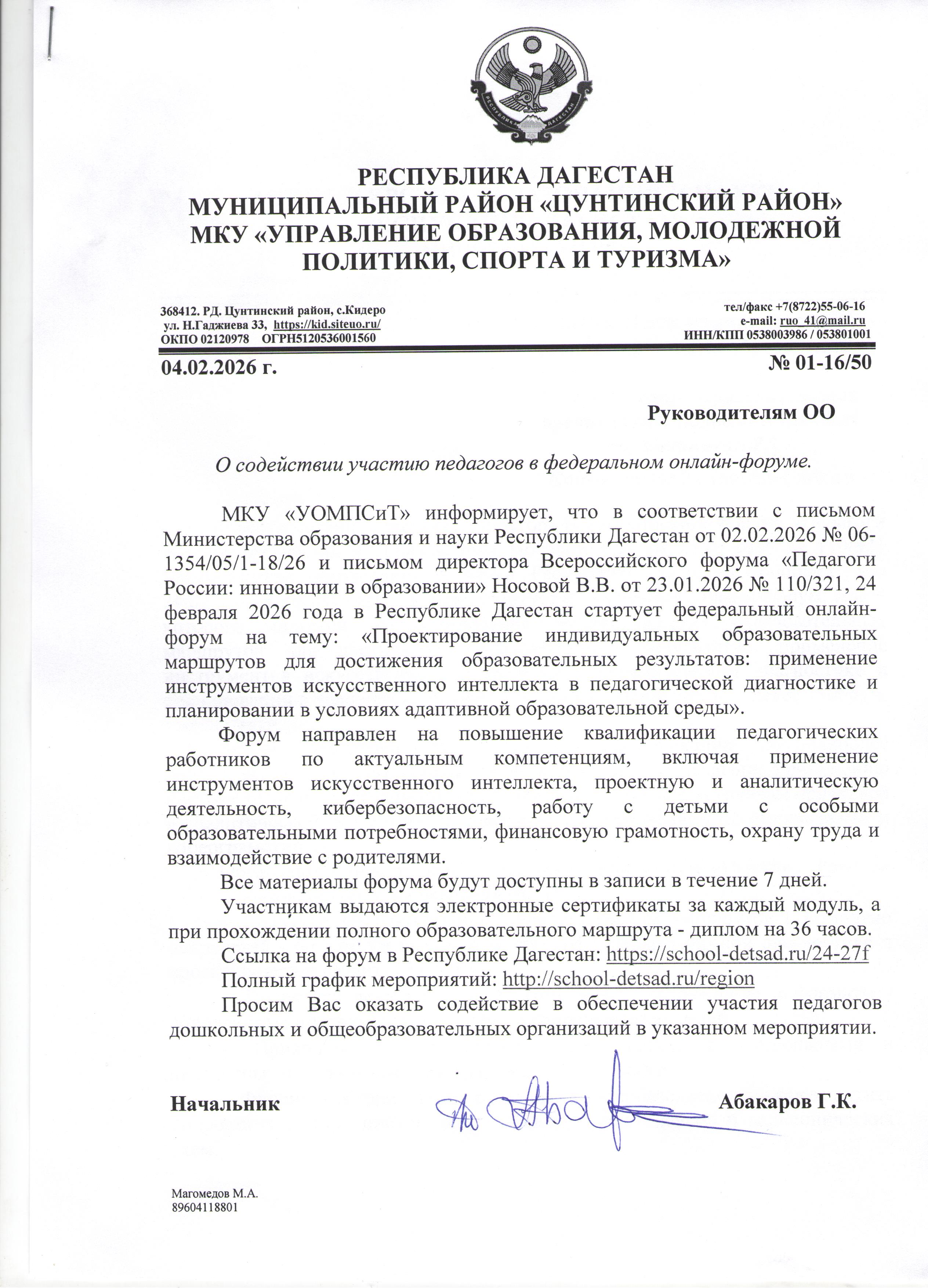 ПИСЬМО № 50 от 04.02.2026 "О содействию участию педагогов в федеральном онлайн-формате"