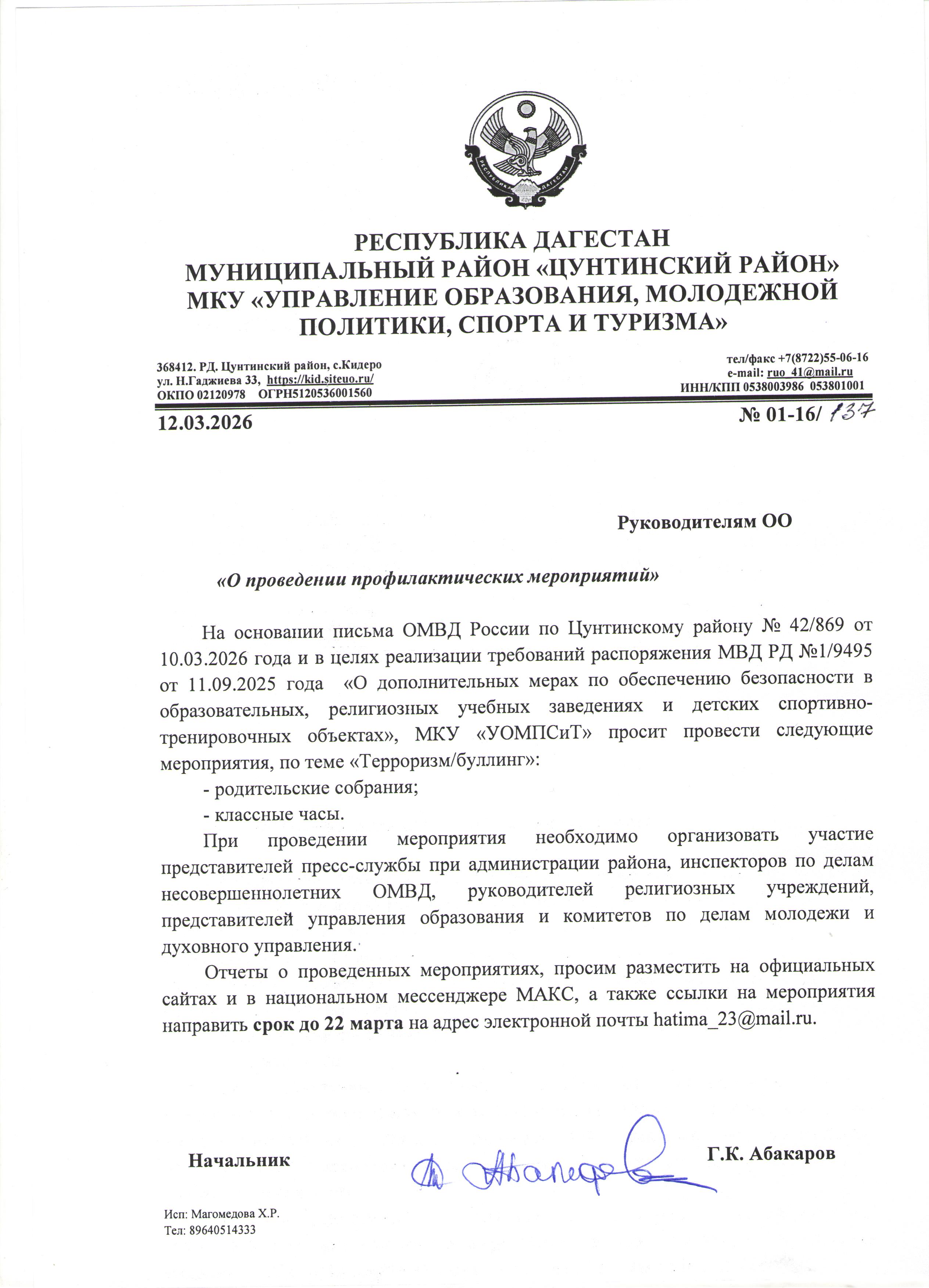 План мероприятий по повышению качества образования в - Цунтинском районе - на период до 2026 года
